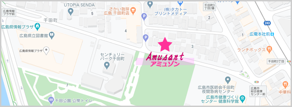 730-0052 広島市中区千田町3丁目3-20 (広電本社前電停より 175m 徒歩3分)
